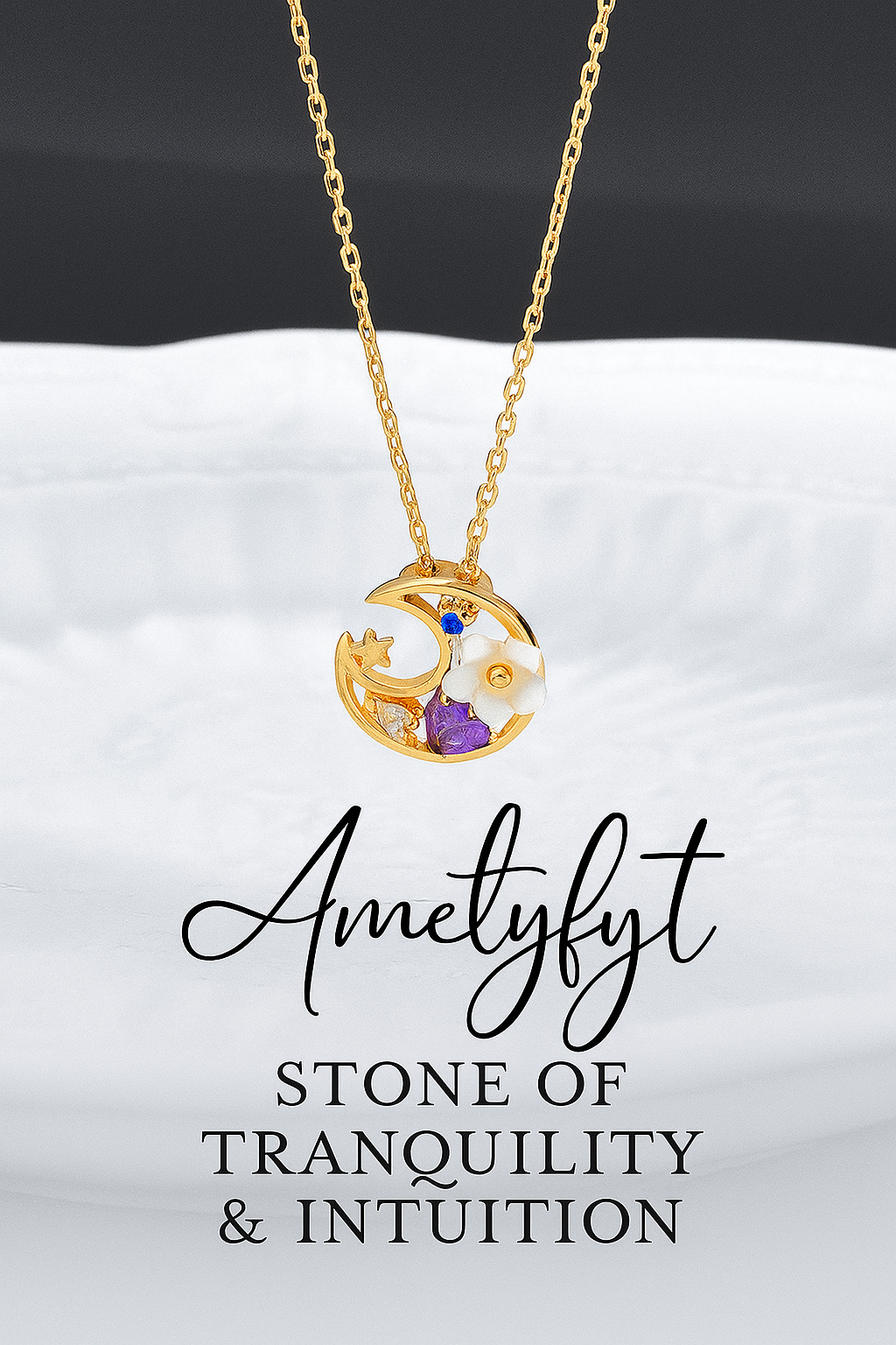 Embrace celestial elegance with the Midnight Garden Necklace — a delicate fusion of moonlight and bloom. This enchanting piece features a crescent moon adorned with a white shell flower, accented by amethyst, blue spinel, and sparkling white zircon stones. The combination of cool violet and deep sapphire tones evokes the quiet beauty of a starlit night.