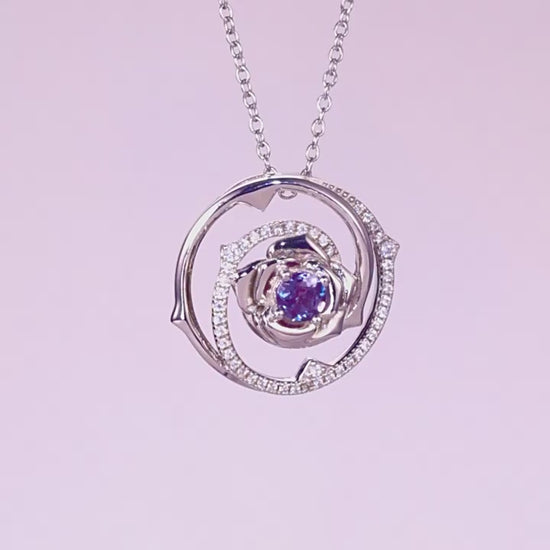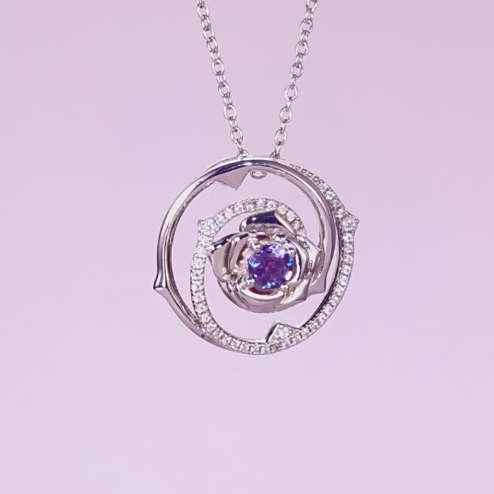 Delicate and timeless, the Iris Eternal Bloom Necklace captures the beauty of a flower forever in bloom. Crafted in solid S925 sterling silver with a luxurious rhodium-plated finish, its swirling petals embrace a radiant lab-created Alexandrite — a gemstone celebrated for its magical color-shifting hues and transformative energy.