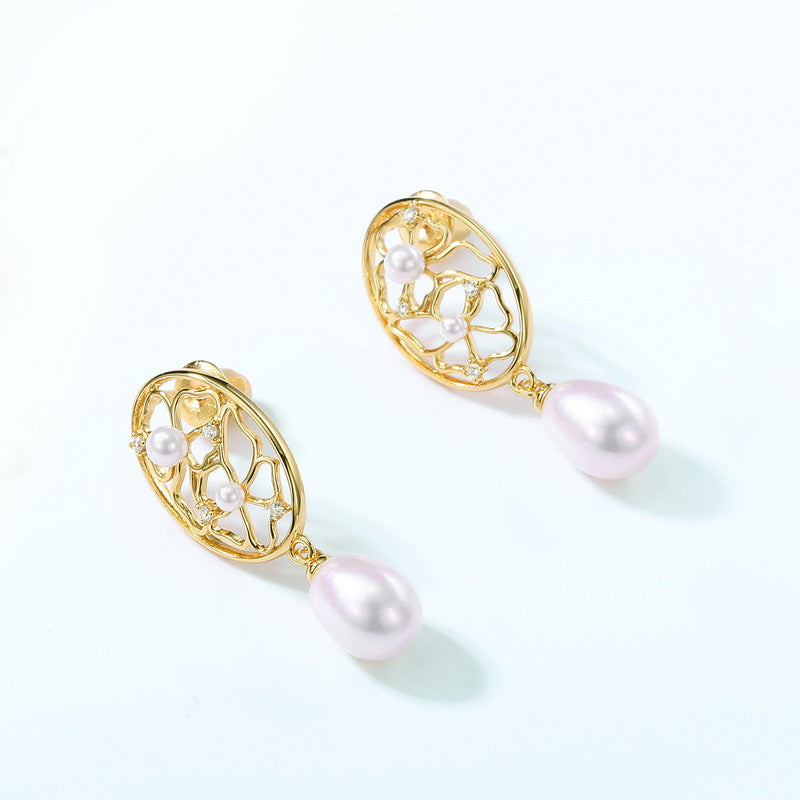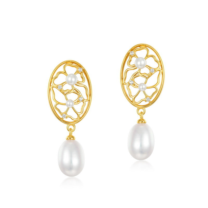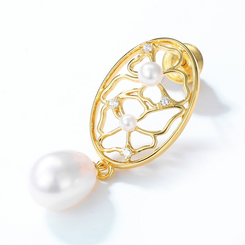 Classic elegance with a modern twist. The Lydia Pearl Earrings feature an intricate floral-inspired openwork design in 10K gold-plated sterling silver, accented with luminous round pearls and sparkling cubic zirconia details. A lustrous drop-shaped pearl completes the design, creating graceful movement with every turn.