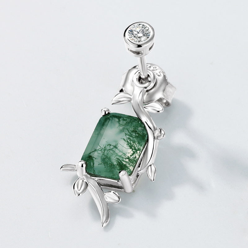 These S925 silver earrings feature an enchanting design with green moss accents. Crafted with exceptional skill, the sterling silver components exhibit a lovely, elegant luster. The embedded green moss elements infuse the earrings with a touch of natural vitality, emanating a delicate, refreshing ambiance.