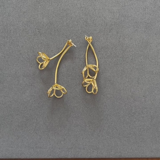 The Rosalind Earrings showcase an exquisite hollow floral design, crafted from brass and beautifully gold-plated. These earrings feature delicate, swaying flower branches that add a touch of elegance and movement to your look.