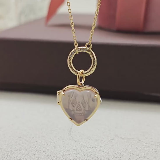 Delicate and meaningful, this Natural Rose Quartz Heart Locket Pendant Necklace is designed to hold love close to your heart. The heart-shaped pendant features a hinged, openable locket design, combining elegance with sentimental charm.